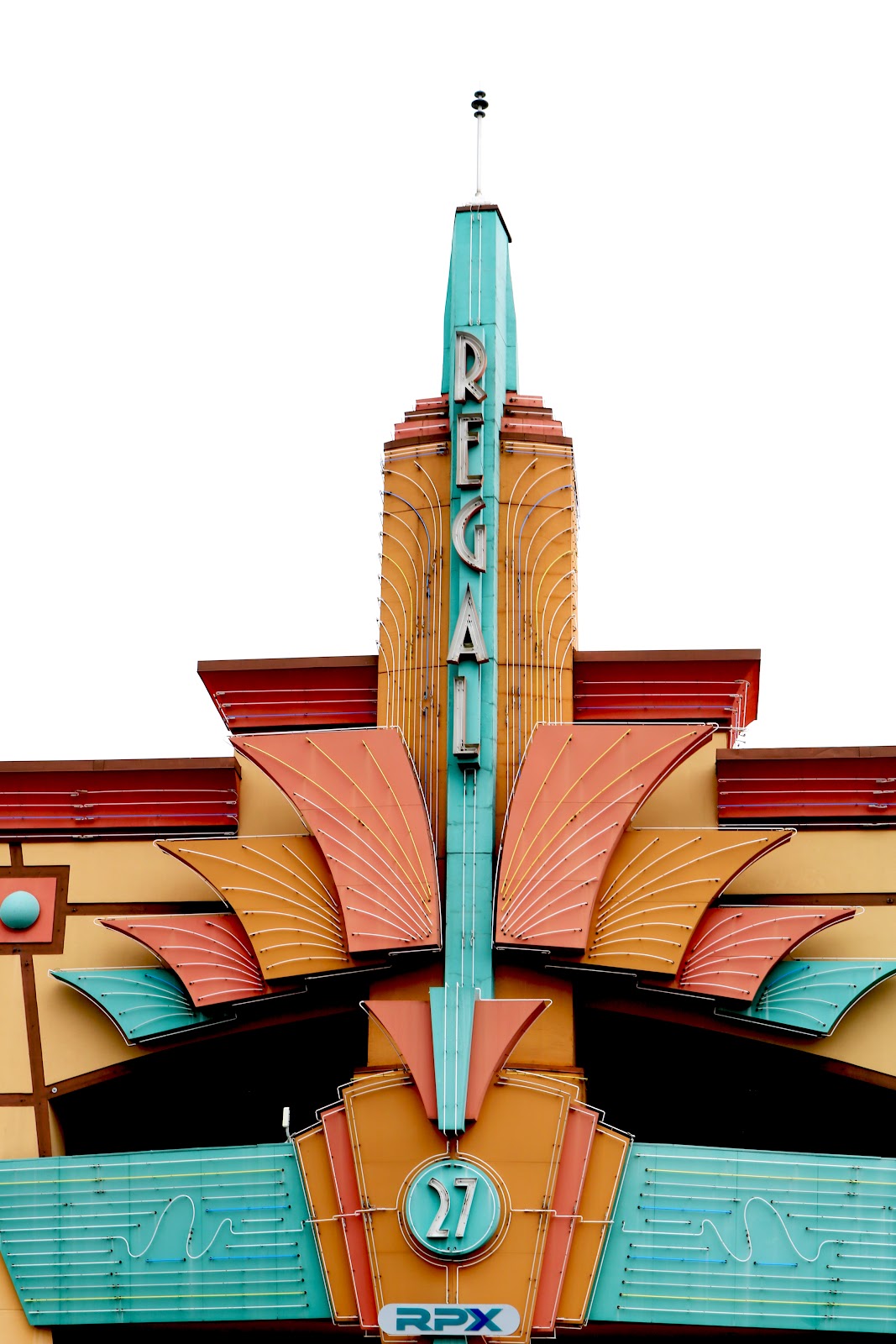 This image is titled The Regal. It was taken late January while on a trip to Nashville. It was taken with my Canon Rebel camera. The building is a movie theater that I came across when I was exploring before going to the hotel. I edited this image by bringing up the contrast because the weather was overcast, and caused the image to be dull. I brought up the brightness as well to make the building show up against the white of the sky. I think that the image could be better if the sky was not white, but I was worried another color would take away from the color of the building.